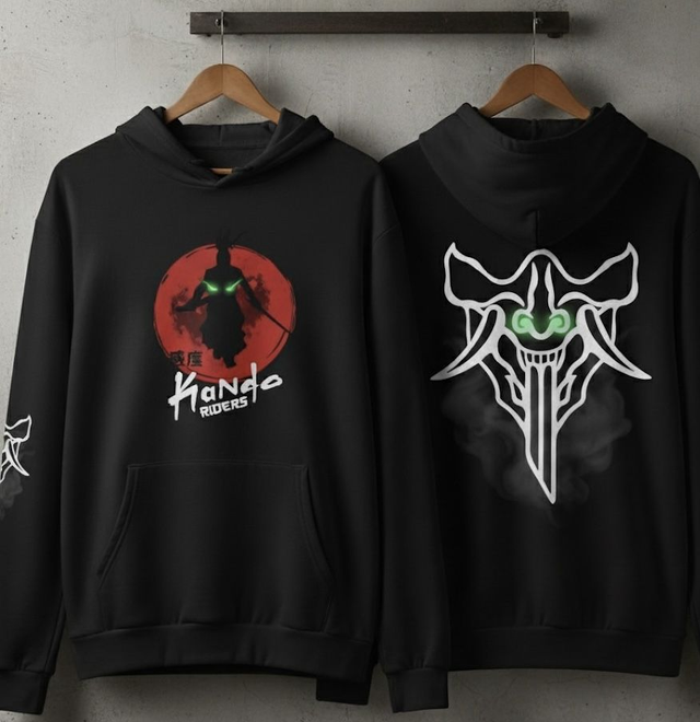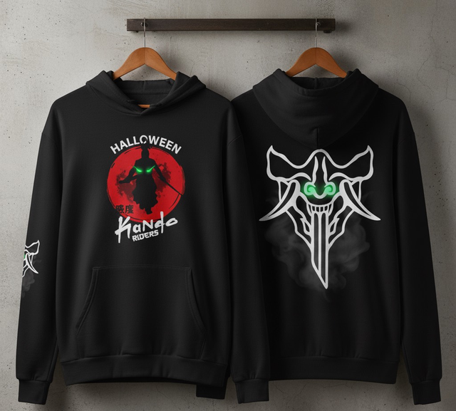 Sumérgete en el mundo Kando con nuestra exclusiva sudadera , diseñada para los más apasionados. Esta prenda, disponible en un cautivador negro o rojo , es una edición limitada que conmemora un evento especial de Halloweeb o de La Papanoelada.