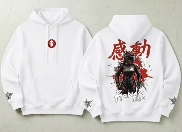 Esta prenda es un homenaje a la pasión por las dos ruedas y al espíritu indomable de las mujeres motociclistas. Bajo el concepto de "Kandō" (感動), que en japonés describe esa emoción profunda que conmueve el alma y nos deja sin palabras, esta sudadera captura la adrenalina pura de rodar por el asfalto.