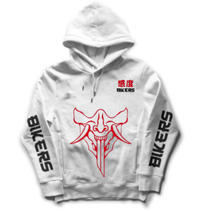 La sudadera Bikers en blanco con máscara de Oni japonés es una prenda imprescindible para cualquier fanático de las motos Yamaha y del estilo urbano. Esta sudadera de alta calidad está confeccionada con un tejido suave y resistente, y cuenta con un diseño moderno y elegante. La máscara de Oni japonesa, bordada en el pecho, le da un toque de misterio y originalidad a esta prenda.